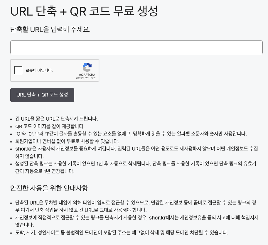 shor.kr – URL 단축 + QR 코드 무료 생성